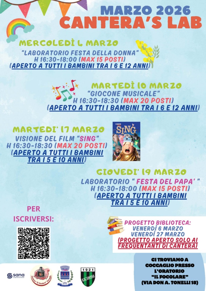📍 Ci troviamo all’Oratorio “Il Focolare” – Via Don A. Tonelli 18, Coccaglio