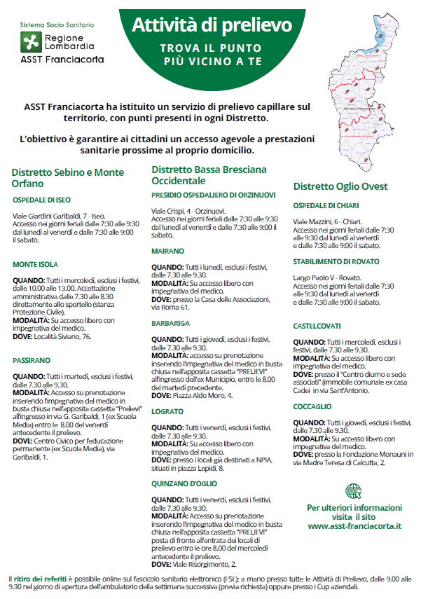 Con l'obiettivo di garantire ai cittadini un accesso agevole alle prestazioni sanitarie prossime al proprio domicilio, ASST Franciacorta ha istituito: