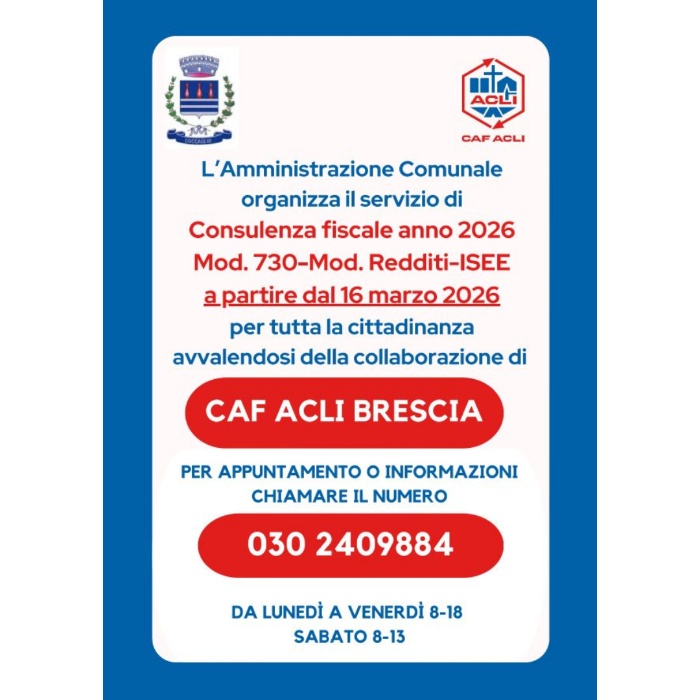 (Modello 730, Modello Redditi e ISEE) a partire dal 16 marzo 2026, in collaborazione con CAF ACLI Brescia.