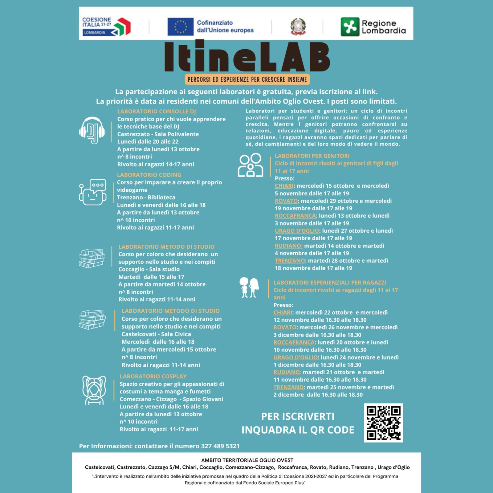 Con ItineLAB puoi scegliere tra tanti laboratori gratuiti pensati per giovani e genitori dei comuni dell’Ambito Oglio Ovest!