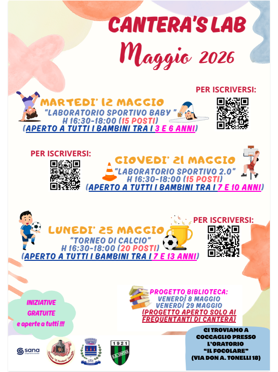 ⚽ Cantera’s Lab con laboratori sportivi, torneo di calcio e attività in biblioteca