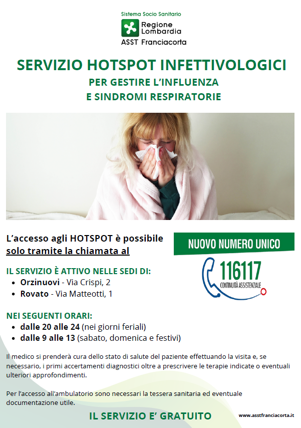 Da venerdì 5 dicembre è attivo il Servizio di HOTSPOT INFETTIVOLOGICO dedicato a pazienti con sintomi respiratori.