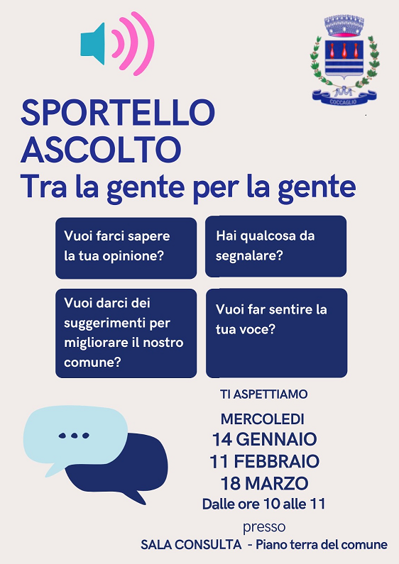 📡 è attivo il nostro SPORTELLO ASCOLTO "Tra la gente per la gente" presso la Sala Consulta del Comune (piano terra).