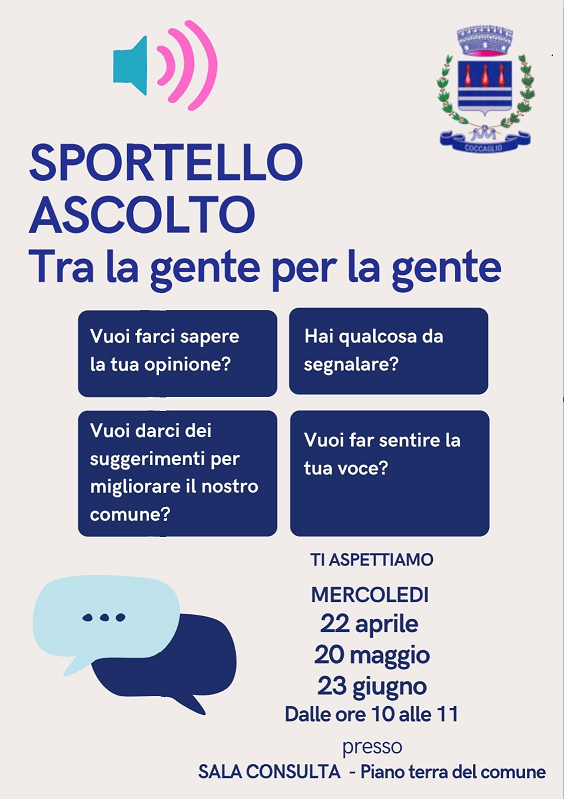 È attivo il nostro sportello ascolto "Tra la gente per la gente" presso la Sala Consulta del Comune (piano terra).
